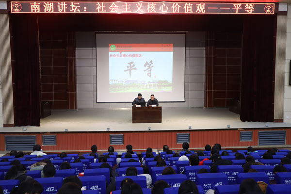 张朋生以“平等”的思想渊源、实质,社会主义核心价值观中的“平等”,现实社会中的“平等”和大学校园中的“平等”为主讲内容,从古至今,由大到小对“平等”进行了全面阐述,希望学生学习平等概念,树立平等目标,践行平等行动。