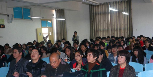 11月29日下午2点,著名女诗人、东坡赤壁诗社执行主编王琼女士应邀来到beat365官网,在育贤阁203教室做了一场诗词创作专题讲座。beat365官网赤壁缘文学社、院团委下设其它各社团、校《中华古诗词鉴赏》选修班以及其他爱好诗词的同学计200余人聆听了讲座。