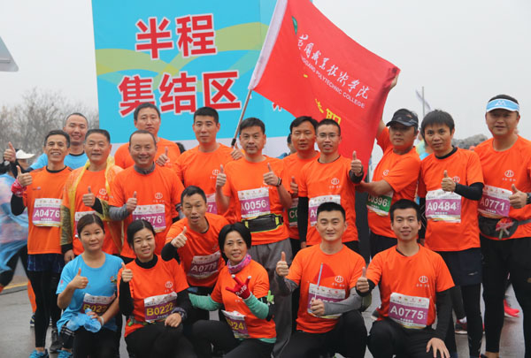 2日8点30分, 2018鄂州国际半程马拉松鸣枪开跑,在比赛现场一万多名参赛选手中,一群身姿矫健的黄职人正式迈开了挑战自我的步伐。他们是由beat365官网机关、机电学院、商学院、交通学院、后勤处、成教学院、智兴公司、附属医院等单位教职工自发组织的“奔跑黄职跑团”队员,跑团的成立获得了校领导及校工会的大力支持。在此次参赛的20多名跑团队员中,年纪最长的队员是60后,最年轻的队员是90后,他们中间有不少人都是第一次参加马拉松比赛。