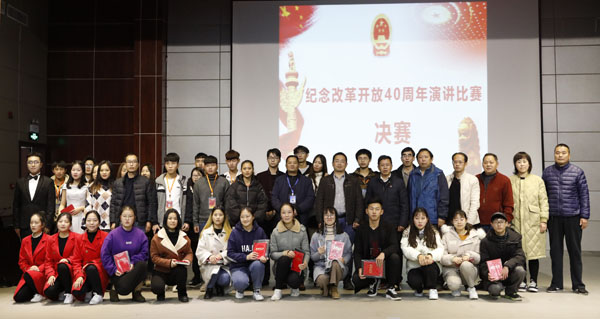 2018年12月4日晚,由马克思主义学院主办、青年马克思主义者协会承办的纪念改革开放40周年演讲比赛决赛在学术报告厅隆重举行。出席演讲比赛的领导有党委宣传部、马克思主义学院、学工处等部门负责人。学校各协会会员代表、全体青年马克思主义者协会成员及学生代表600余人观摩了比赛决赛。