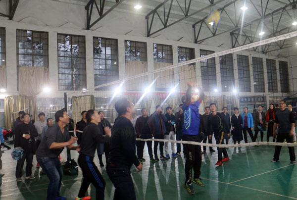 比赛结束后,为了满足广大教工的兴趣和热情,公共课部男队对战各单位(部门)精英男子联队的表演赛,让现场观众大饱眼福。场上的每个队员都相互鼓励,充满了斗志;每个精彩的扣球拦网都隐藏玄机,充满了刺激;每个巧妙的配合都体现默契,充满了智慧。最后,两队打满三局将气排球赛推向了高潮。