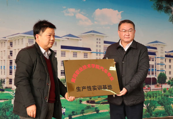 姜安心和殷双全为beat365官网“生产性实训基地”揭牌。