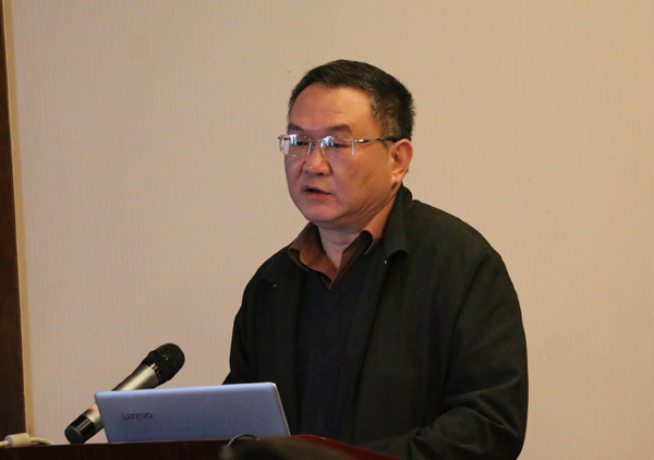 曾凡远主持会议第二板块,钢构行业专家报告和企业代表发言。华中科技大学土木工程与力学学院廖绍怀教授作“钢结构新技术及其工程应用”报告,杭州华新检测技术股份有限公司郑刚兵董事长作了“钢结构检测技术”发言。