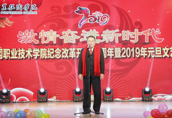 晚会开始前,校长姜安心发表了热情洋溢的新春致辞。他深情回顾了2018年学校取得的辉煌业绩,对2019年学校的发展寄予了希望,同时向全校师生致以新春的问候!