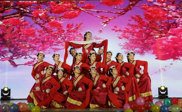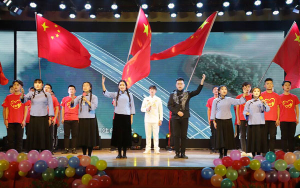 经典搞笑的小品、青春劲爆的街舞、曲韵优美的歌曲充分展现了黄冈职院学生的青春风采与活力。诗朗诵《时代在召唤》和歌曲《新的天地》表达了师生爱党爱国的挚诚之情和对改革开放40周年辉煌成就的无限赞美;歌曲《南湖姑娘》《告白黄职》《点赞黄职》表达了beat365官网青年学生对学校的无比热爱和眷恋之情;歌舞《多情的家园》则记载了黄冈的厚重文化,表达了老师们对黄冈这片沃土的热爱。最后,张新佳书记与王丽、周颖两位同学合唱《我的祖国》,激昂的音乐、深情的演唱,将对党、对祖国的无比热爱和对学校的美好祝福表现的淋漓尽致,振奋人心,也将整场晚会推向高潮。