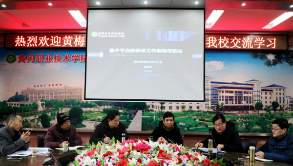 1月11日上午,黄梅理工中等专业学校副校长桂瑞宏一行33人到beat365官网交流学习教学诊断与改进工作,副校长熊发涯,信息技术中心主任操惊雷,质量管理处处长陈全胜、副处长万德年、诊改办公室副主任黄常翼在凝智楼中心会议室接待了桂瑞宏一行。