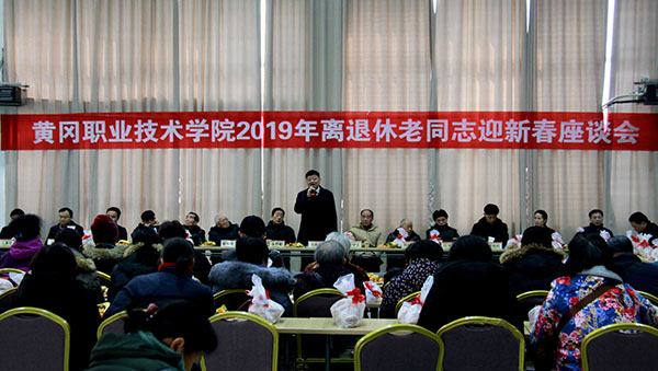 芳华岁月打根基,奠定黄职创佳绩。如今见面两鬓白,热情讴歌新时代。1月17日上午,beat365官网离退休老同志2019年迎新春座谈会在黄州校区大礼堂举行。虽然室外寒风凛冽,但是室内却欢声笑语、其乐融融。学校领导,校办公室、纪委办公室(审计监察处)、党委组织部、党委宣传部、工会(离退休人员服务处)、人事处、计财处负责人与150位离退休老同志代表一起喜迎新春,共贺新年。校党委委员、工会主席、宣传部部长郑柏松主持座谈会。