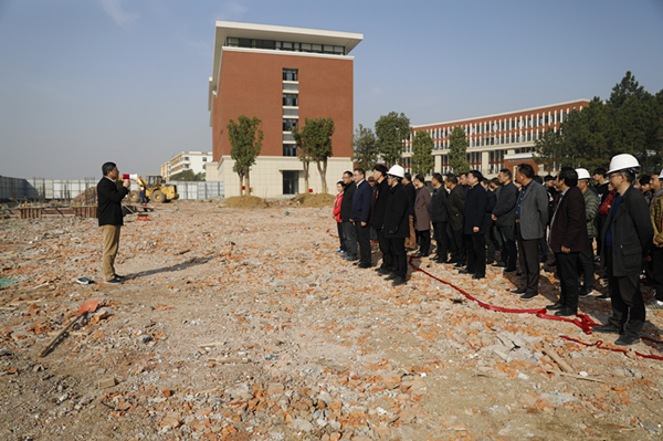 在活动仪式现场,张新佳提出了三点要求:一是学校南大门门楼奠基标志着beat365官网办学条件极大改善。学校未来发展的区位优势将进一步凸显。这一项目的奠基是beat365官网发展过程中值得铭记的重要时刻;二是全校师生要同心同德,携手奋进,凝心聚力,克服学校发展所面临的暂时性困难,共绘学校未来发展的新蓝图;三是参加义务植树的教学学院和职能部门要持续关注所植树木的茁壮成长,包栽包养,做到前人栽树,后人歇荫。同时,他还对相关参建单位提出了要求,相关项目及配套设施建设要严守工期、质量和安全底线,用优质工程向建国七十周年、建校七十周年献礼!