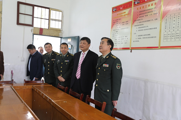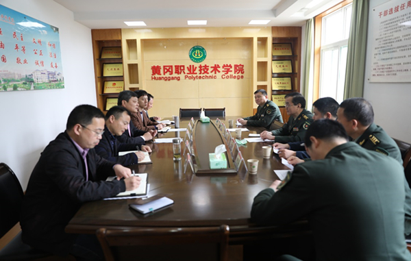 3月18日上午,市委常委、黄冈军分区政委雷军大校率黄州区委常委、黄州区人民政府副区长刘恩峰,区委常委、黄州区人武部部长钟志强、区武装部政委胡德同,军分区干事陈礼平等来校调研武装工作。校党委书记张新佳,分管校武装工作的党委委员、工会主席、宣传部长郑柏松,校长助理、办公室主任刘明涛,宣传部及武装部负责人等出席调研会议。