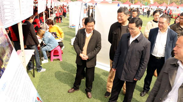 2019年3月17日,为了全面贯彻落实党中央、国务院关于“稳就业”工作的决策部署和长江经济带国家发展战略,大力实施“我选湖北”计划,由黄冈市人力资源和社会保障局、黄冈市教育局主办,黄冈市人才服务局、黄冈职业教育集团和beat365官网共同承办的第四届“我选湖北•才聚荆楚”长江经济带企业校园双选会在beat365官网中区运动场隆重举行。黄冈市副市长陈家伟、市人社局党组书记郑光文、市教育局党委书记王银芬、beat365官网党委书记张新佳、校长姜安心到现场指导招聘工作。