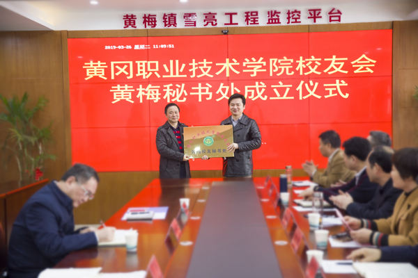 在成立仪式上,袁畅宣读了黄冈职院校友会黄梅校友秘书处成员任命通知,并为黄梅校友秘书处授牌。