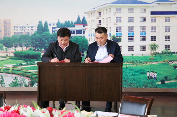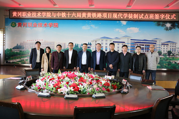 会上,由陈殿杭和宋广辉代表中铁十六局黄黄铁路项目部和黄冈职院签订现代学徒制校企合作协议。