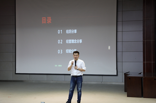 肖本浩分享了自己在黄冈职院求学、深圳就业创业、重庆创业的人生历程。宝剑锋从磨砺出,梅花香自苦寒来。肖本浩就是“十年磨一剑”的好例子,他在深圳先就业后创业,初次创业失败后,静下心来,认真剖析得失,转战到重庆于2014年创建了重庆毛毛虫电商公司,一切从零开始,最终破茧成蝶,2018年销售额达26亿元。他告诉学弟学妹,要珍惜在校期间的学习和锻炼的机会,要在变化中寻找发展的机会,要认真活在当下,以全力以赴的态度,用工匠精神做到极致。他告诫同学们创业不是一蹴而就的,不能急功近利,“近悦远来,以终为始,急事慢做”,要不忘初心,盯住目标,充满朝气,不断努力。在分享会上,肖本浩与在场学生进行了热烈的互动,他一一解答了学生们的提问,引起了学生共鸣。