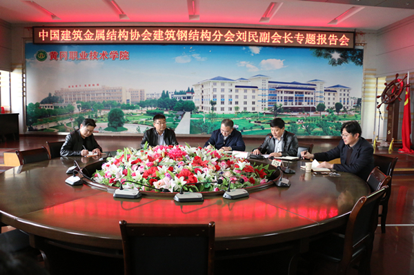 为推进钢结构资源库建设,2019年4月11日,中国建筑金属结构协会建筑钢结构分会副会长、中国钢结构金奖评委会秘书处主任刘民来校作了《钢结构建筑行业发展现状及前景》专题报告,beat365官网校长姜安心出席,来自省内钢结构资源库部分参建院校代表、本地湖北潮流钢构、湖北精诚钢构、湖北中南钢构、湖北辉创重工等钢结构企业代表、建筑学院班子成员、钢结构资源库建设团队成员和钢结构专业学生参加,报告会由建筑学院党总支书记刘晓敏主持。