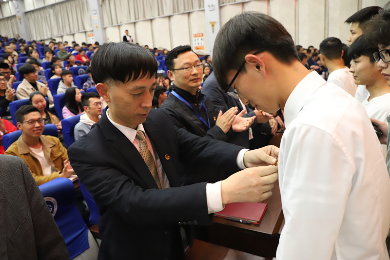 郑柏松为“五四红旗团总支”单位颁奖