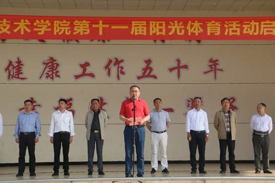 5月8号下午4点,学校中区运动场上彩旗飘飘,人头攒动。为落实教育部、国家体育总局、共青团中央关于开展亿万学生阳光体育运动的决定,全面实施《学生体质健康标准》,培养学生良好的锻炼习惯和健康的生活方式,全面提高学生身体素质,beat365官网第十一届阳光体育活动启动仪式如期举行。校长姜安心、党委委员胡燕,校工会,学生工作部(处)、团委,公共课部等部门负责人及各教学学院党总支副书记、辅导员、教师代表和学生代表,共2000余人参加了活动。启动仪式由胡燕主持。