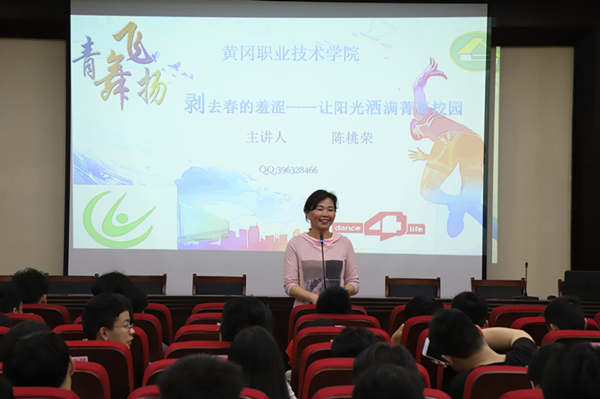 为普及艾滋病防控知识,提升中职生的防艾意识,帮助学生树立爱惜生命和自尊自爱的良好意识,传递青春健康生活理念。5月16日下午,beat365官网生命之舞、青春健康项目组来到黄冈市中等职业学校(集团)开展了“剥去春的羞涩——让阳光洒满菁菁校园”主题宣讲活动。beat365官网心理健康中心主任杨晓燕、工会陈桃荣、心理健康中心教师万建华、朱晓宇、团委汲艳蕊、青春同伴社成员20余人以及黄冈市中等职业学校(集团)近200名师生参加了本次活动。此次活动由黄冈市中等职业学校(集团)团委书记王文杰主持,陈桃荣老师作主题宣讲。