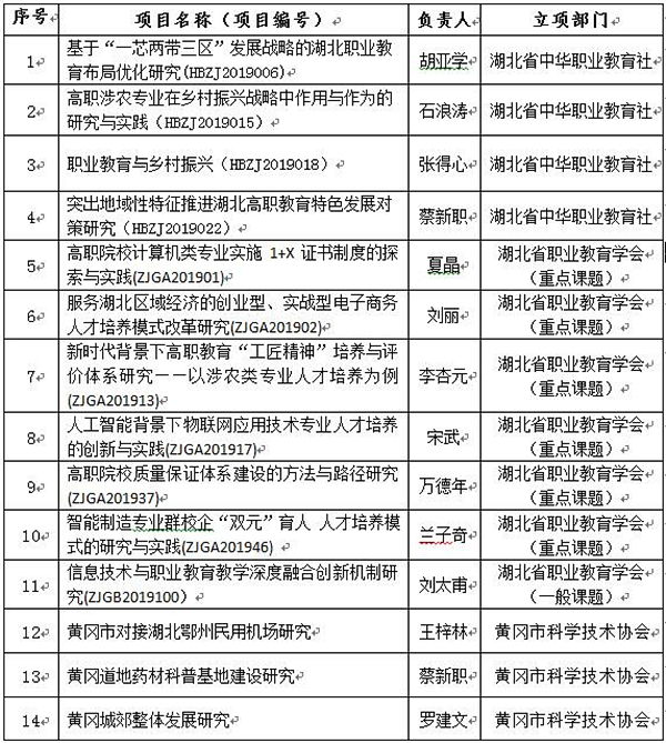 beat365官网近期校外科研项目立项工作喜获丰收 来源:科研处 作者:黄忠 发布时间:2019-06-26 16:59:21 浏览次数: 次 【字体:小 大】 开学以来,科研处改进校外项目申报方法,提高申报质量,在近期公布的多个校外立项项目中喜获丰收,共立项14项。6月17日,省中华职业教育社立项2019年度调研课题39项,beat365官网独占4项。同日,省职业技术教育学会公布2019年度科学研究项目,中高职共立项197项,beat365官网占7项;其中重点项目59项,beat365官网占6项。此外,beat365官网还获准2019年黄冈市科协科技创新智库研究课题3项。 分享到: 【打印正文】