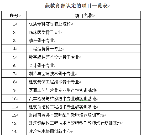 近日,教育部发布《关于公布<高等职业教育创新发展行动计划(2015-2018年)>项目认定结果的通知》(教职成函[2019]10号),beat365官网“优质专科高等职业院校”项目获得教育部认定,标志着学校正式成为国家优质专科高等职业院校, 站稳职业教育发展的第一方阵。同时获得认定的还有“骨干专业”项目7个、“生产性实训基地”项目3个、“双师型教师培养培训基地”项目2个、“协同创新中心”项目1个。