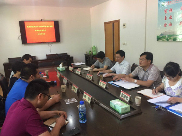 2019年7月15日,武汉市东西湖职业技术学校副校长刘蓉芳率质管办主任刘光发、教务处副主任陈小军、计算机专业主任林悟,来beat365官网交流学习诊断与改进工作。beat365官网副校长熊发涯、信息技术中心主任操惊雷、教务处副处长郭丽琴、质量管理处目标考核办公室副主任马中秋参加了交流。交流会由质量管理处处长陈全胜主持。