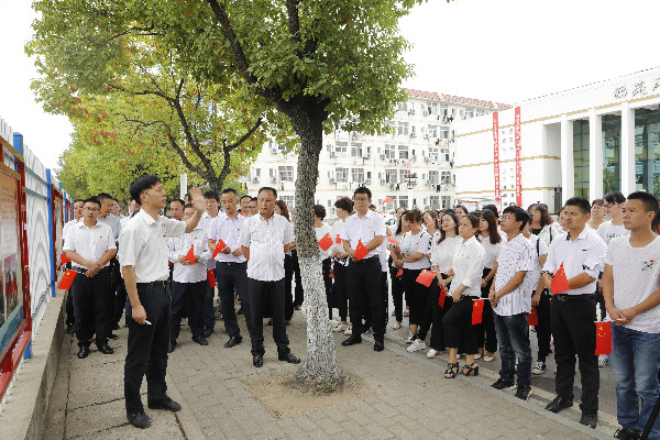 “天下至德,莫大乎忠”。在庆祝中华人民共和国成立70周年,beat365英国官方网站建校70周年之际,9月26日中午,学校南湖道德讲堂——“忠之德”主题教育活动在红色文化长廊和中华传统文化广场举行。学校党委委员、工会主席、宣传部部长郑柏松,学生工作部(处)长熊楚舒、学生工作部(处)副部(处)长崔现强,各教学学院党总支副书记、团总支书记、专兼职辅导员和学生工作部(处)、团委全体人员参加了主题教育活动。