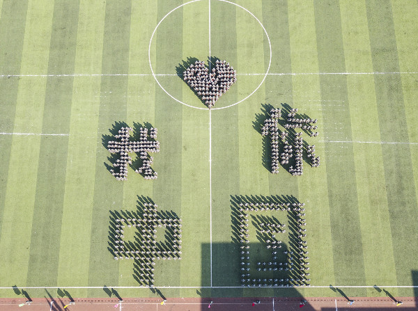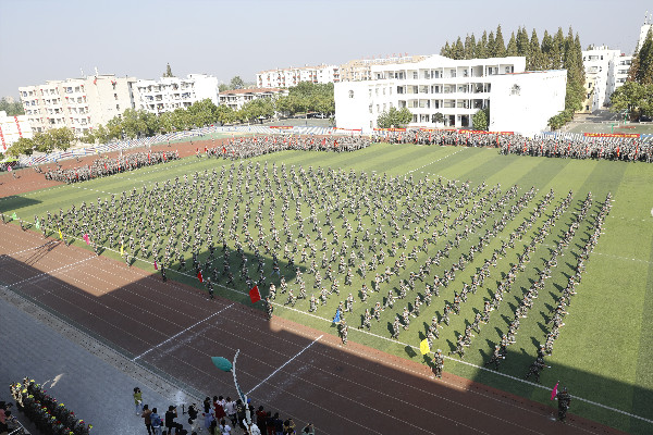 军训结业典礼在庄严的升国旗仪式中拉开帷幕。在阅兵式中,张新佳在孙建军的陪同下检阅了军训连队。77个连队方阵队列整齐,口号嘹亮,精神抖擞,气宇轩昂,学生们以奋发向上的精神风貌迎接首长检阅。在分列式中,每个连队方阵整齐划一、英姿飒爽,依次经过观礼台接受检阅,展现了黄职学子们奋勇拼搏、勇往直前的意志品质。在军训成果汇报表演中,600名女生方阵集体表演了气势磅礴的军体拳,通过队形变换,分别呈现“987654321”、“1949-2019”、“70”、“我爱你中国”等字样。最后,全体师生齐唱《歌唱祖国》,祝福祖国70周年华诞。