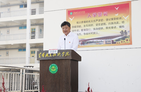 张新佳发表了热情洋溢的讲话。他代表学校全体师生员工对2019级新同学的到来表示最热烈的欢迎,回顾了学校近年来取得的成绩,并对全体新生提出了三点希望:一是希望同学们不忘初心、牢记使命,用奋斗抒写青春;二是希望同学们崇德强能,务实创新,用担当实现梦想;三是希望同学们胸怀祖国,情系母校,用感恩砥砺前行。