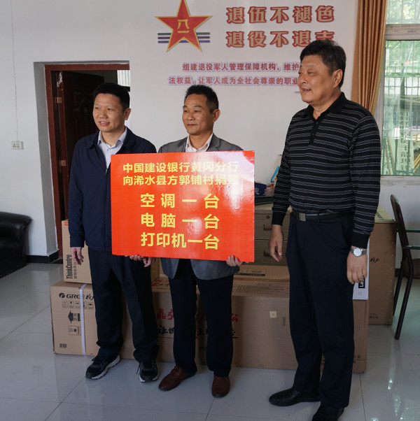 在方郭铺村扶贫工作队驻地,张新佳书记、胡林惠行长向工作队捐赠了空调、电脑和打印机等一批办公和生活用品,勉励队员要扎根基层,做实工作,不实现全面脱贫决不收兵。