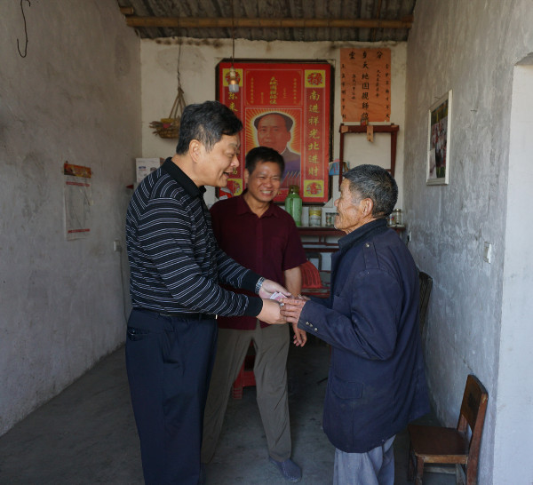 在村民家里,张新佳书记、胡林惠行长为对口帮扶的贫困户送去慰问金,上门看望了陈又清、郭能进和郭本友等贫困户,仔细询问了他们的家庭经济状况变化情况,鼓励他们勤俭持家、劳动致富。