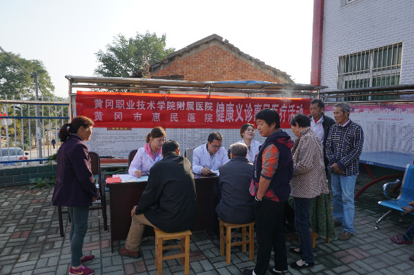 在村部大院,附属医院院长沈爱平带领3位医疗专家为近百名村民开展义诊活动,量血压、测心率、察病情、开药方,并对症免费发放药品,叮嘱注意事项,宣讲保健知识,受到群众交口称赞。