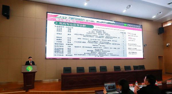 熊发涯以“专业建设思路和举措”为主题,图文并茂,从建设概况、建设思路、建设原则、建设举措四个方面详解了学校的专业建设和发展情况,展示了学校专业建设特色、成效及国际化发展前景。
