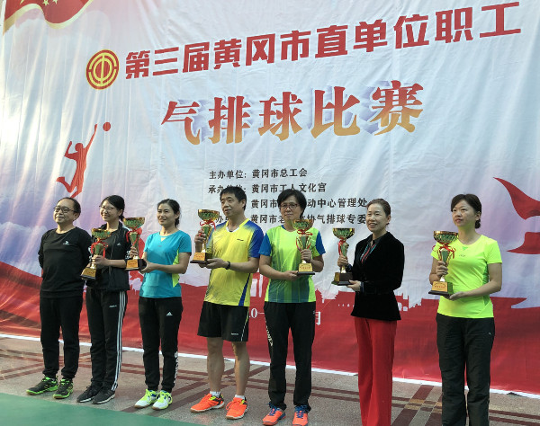 10月17--18日,由市总工会主办的第三届黄冈市直单位气排球比赛圆满落幕。市直机关和企事业31家单位48支代表队约560名运动员参加了本次比赛。经过两天的紧张角逐,beat365官网女教工代表队荣获机关事业单位女子组金奖。
