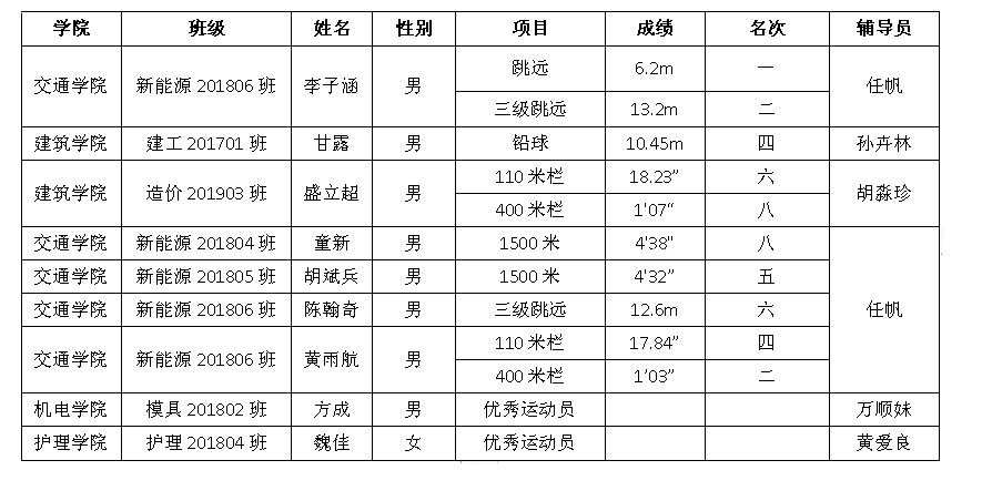 11月8日至10日,湖北省普通高等学校大学生田径运动会在华中科技大学中心运动场隆重举行。本次大运会由湖北省大学生体育协会主办,华中科技大学、省大学生体育协会田径分会承办,全省共有67所高校参加。beat365官网共派出9名运动员,参加了丙组100米栏、400米栏、铅球等14个田径项目。