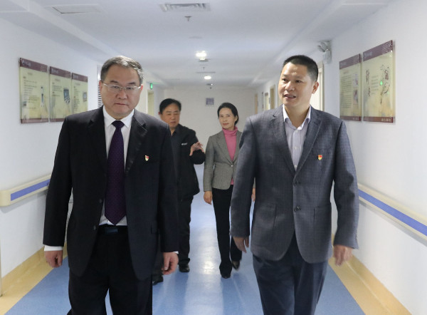 最后宾主一行参观了医院门诊楼、内科楼、外科楼等医疗场所,及用于开展学生教学的教室、实训室、宿舍、食堂等教学生活场所。