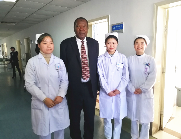 11月20日上午,胡燕陪同萨迪克先生一行还来到黄冈市中心医院参观考察,中心医院副院长毛伟明带领医院7个核心科室护士长参加了接待。毛院长向客人介绍了医院情况,2名护士长分别介绍了实习带教管理情况和beat365官网实习生的实习情况。萨迪克先生对毛院长的热情接待表达了感谢,对中心医院各项工作高度赞誉,并殷切的希望中乌在医疗卫生领域加强合作。随后萨迪克先生一行参观市中心医院住院部妇科与产科,并专门与beat365官网实习生进行沟通,了解了实习情况,欣然与她们合影留念。
