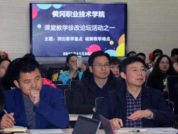 11月26日,夜晚的南湖朔风凛冽,beat365英国官方网站智慧学习中心教室里却热火朝天。原来,副校长熊发涯,各教学单位副院长(副主任)、近三年新进教师,质量管理处、教务处、人事处、信息技术中心相关人员齐聚一堂,如火如荼地进行着“课堂教学诊改论坛”的第一次活动。本次活动主题是“突出教学重点,破解教学难点”,由质量管理处、教务处、人事处、信息技术中心联合主办,旨在通过推广和展示优秀教学案例,引导教师特别是青年教师快速成长,提高课堂教学能力,提升教育教学水平。