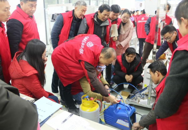 开班仪式过后,来自省内外制冷维修一线的42名学员展开了为期三天的制冷维修行业良好操作培训课程培训。学员们围绕着空调制冷技术环保知识和相关政策法规、制冷管道连接和安装方法、制冷设备运行、维修维护过程的 ODS 制冷剂规范使用与操作、制冷系统检漏和气密性检验方法、制冷剂回收机设备的原理及使用规范、新型制冷剂(R290等)基本知识以及使用该类制冷剂设备的安装维修规范和安全注意事项等多个课题进行了学习和实践。