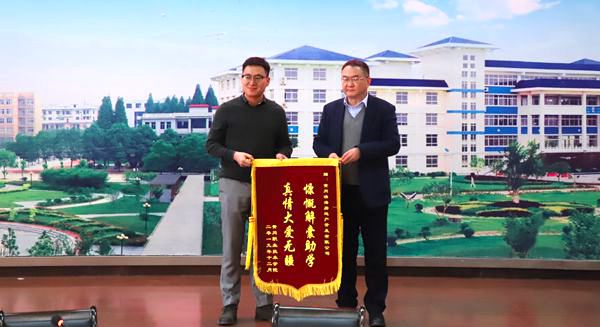 姜安心代表学校党委、行政以及beat365官网2万余名师生员工,对黄冈澳海房地产开发有限公司莅临学校为beat365官网学生捐资助学表示热烈的欢迎和最诚挚的感谢。他表示,黄冈澳海黄冈澳海房地产开发有限公司的捐资助学,充分体现了他们不忘初心,履行社会责任,奉献爱心的企业理念。他坚信“艰难困苦、玉汝于成”,希望受资助的同学正视暂时的贫困,坚定理想信念,珍惜美好学习时光,加强理论实践,把个人的青春梦想融入到社会的发展中去,不辜负爱心企业的期望,成为对自己、对家庭、对社会有用的人。