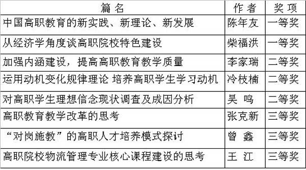 喜报:我院八篇论文在市职教学会2007年度优秀论文评审中获奖 来源:科研处 作者:郭杏芳 发布时间:2016-01-19 15:26:51 浏览次数: 次 【字体:小 大】 为深入贯彻各级教育工作会议精神,促进群众性理论和实践研究,提高学术研究水平,提升办学质量和效益,市教育局和职教学会组织开展了2007年度全市职业教育与成人教育学术论文评审活动。经市职教学会学术委员会评审,共评出优秀论文一等奖15篇,二等奖25篇,三等奖50篇(黄教职成[2008]5号),我院获奖情况如下: 分享到: 【打印正文】
