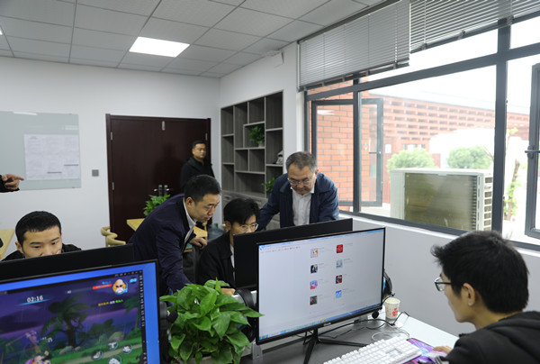 与会者参观鄂东新媒体运维实践教学基地,该基地首批通过面试的28名学生进入顶岗实习。