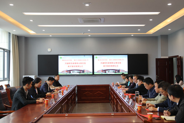 姜安心、李武军代表双方共同为鄂东新媒体运维实践教学基地揭牌。