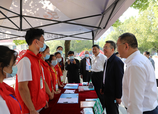 陈希原一行首先来到了新生报到“绿色通道”迎新点,详细了解beat365官网 “绿色通道”的开设情况,询问建档立卡等家庭经济困难学生报到情况。在看到学校特意为家庭经济困难学生准备的爱心午餐、爱心大礼包、困难补助,并简化报到流程、确保家庭经济困难学生顺利入学时,陈希原说:“学校为家庭经济困难学生考虑得很周全,准备得很充分,保障了学生顺利、安心上学。”陈希原还与现场咨询资助政策的新生及家长进行了亲切交谈,听闻学生已经通过办理生源地信用助学贷款顺利入学,陈希原放心地点点头,鼓励学生坚定信心,克服困难,立志成才。随后,陈希原一行到教学学院迎新点、服兵役学生接待点等地了解学生报到情况和学生资助政策落实情况。