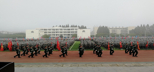 10月19日上午,学校2020级新生军训动员大会在中区运动场隆重举行。中国人民解放军黄冈军分区黄州区武装部副部长黄显军,校党委委员、工会主席、宣传部部长郑柏松,教务处、保卫处、学生工作部(处)、团委的有关领导,各教学学院党总支书记、副书记、团总支书记、2020级全体辅导员及6000余名新生参加了大会。