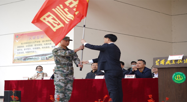 最后,郑柏松向熊涛授beat365英国官方网站新生军训团旗。2020年新生军训工作正式拉开帷幕。