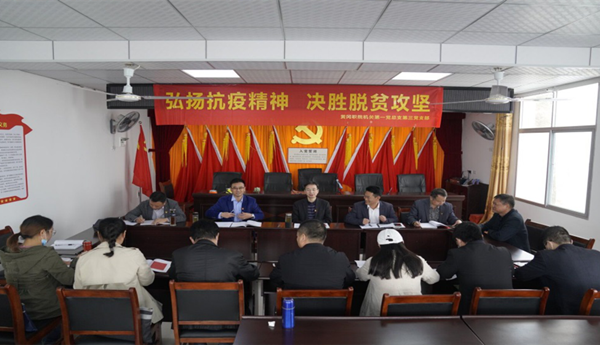 在村委党员活动室,学校机关一总支三支部党员与方郭铺村委会成员联合开展了“弘扬抗疫精神、决胜脱贫攻坚”主题党日活动。