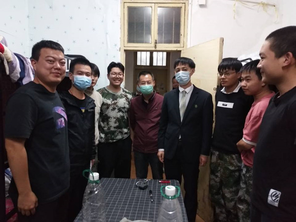 10月19日晚,校党委委员、工会主席、宣传部部长郑柏松带领交通学院党总支书记黄国祥、副院长聂进、副书记吴冬,专业主任及新生辅导员一行14人深入21栋公寓看望2020级新生。