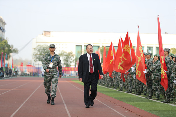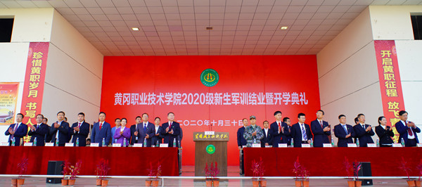 10月30日上午,学校2020级新生军训结业暨开学典礼在中区运动场隆重举行。中国人民解放军黄冈军分区副司令员盛传发,军训团团长黄显军,校长姜安心,副校长万俊华,党委委员、工会主席、宣传部部长郑柏松,党委委员胡燕,校长助理、办公室主任刘明涛,各教学学院党总支书记、有关职能部门负责人,各教学学院党总支副书记、团总支书记、新生辅导员及2020级全体新生参加了典礼。典礼由郑柏松主持。
