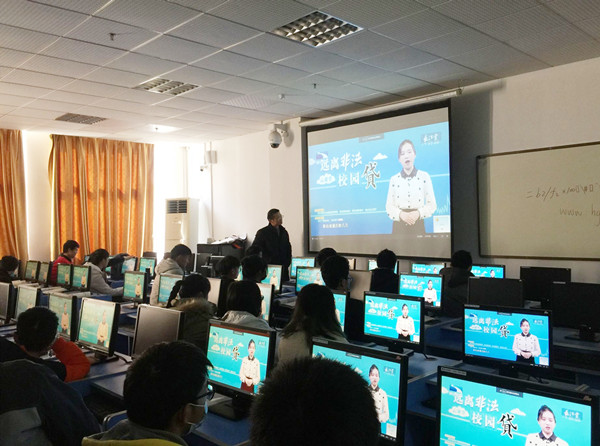 为进一步提高beat365英国官方网站学生识别、防范和应对“非法校园贷”的能力,按照湖北省防范化解金融风险攻坚指挥部工作安排,11月30日下午,黄冈职院学生工作部(处)、团委、教务处、保卫处和各教学学院组织全校学生同上一堂“远离非法校园贷”专题讲座,收看“套路贷”剪纸艺术短片和“远离非法校园贷”讲座直播视频。