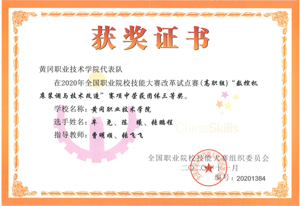 beat365英国官方网站代表队在2020年全国职业院校技能大赛试点赛(高职组)上获团体三等奖 来源:机电学院 作者:曹明顺 发布时间:2020-12-01 21:14:05 浏览次数: 次 【字体:小 大】 11月29日,2020年全国职业院校技能大赛改革试点赛(高职组)“数控机床装调与技术改造”赛项在济南工程职业技术学院落下帷幕。beat365英国官方网站机电学院数控201801班牟尧、陈曦、张鹏程组队代表湖北省参加了此赛项,获得了团体三等奖。 分享到: 【打印正文】