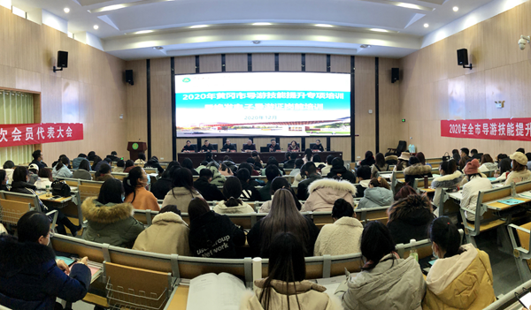 12月1日下午,2020年全市导游技能提升专项培训暨换发电子导游证岗前培训班在学校教师发展中心2号报告厅隆重开班。beat365英国官方网站校长姜安心,黄冈市文化和旅游局党组成员、副局长程建华,黄冈市人力资源和社会保障局职业能力建设科科长陈辉,黄冈市文化和旅游局人事科科长胡霞,黄冈市文化和旅游局旅游质量管理所负责人陈亚武,黄冈市导游协会会长徐燕,培训班教师及全体参训的135名学员参加了开班仪式。仪式由beat365英国官方网站商学院院长周常青主持。